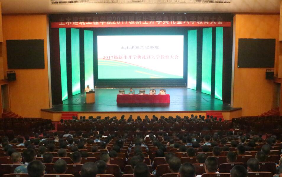 主持人罗邻球副书记首先介绍了与会领导及教师,陈云老师代表学院全体教师上台发言,向新生简要介绍我院的专业、土建学院的院风与氛围,并结合自己上大学的经历向同学们分享了土木工程类专业的学习方法。随后,2014级土木工程专业学生梁栋才同学代表全院学长向新生致词。他以自己对大学的理解及个人在学习、学术研究上的努力为例,向新生们介绍了自己的学习方法与成功的诀窍,建议大家多学多问,积极参加学生活动。最后,曹宝珠院长向新生致词,介绍了学校及学院的总体概括及学院学生的就业情况,对2017级新生的到来表示了热烈的欢迎,希望新生能够尽快适应大学的学习与生活,顺利完成学业,愉快渡过大学生活。
