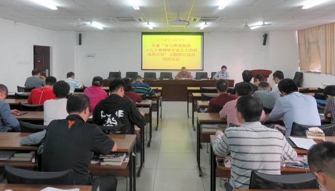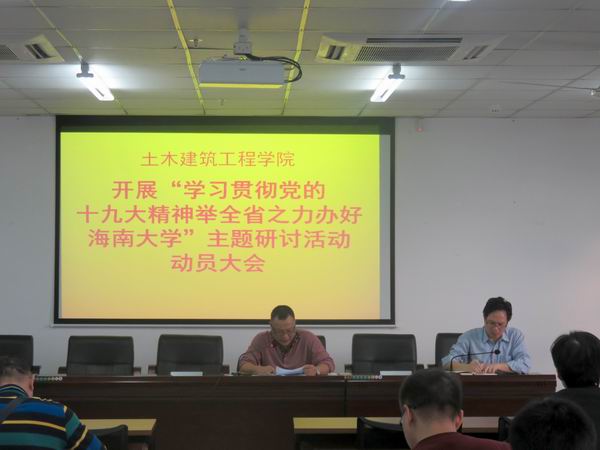 (一)学习动员。2017年11月30日,召开全院教职工大会,传达学习《中共yl6809永利检测中心委员会关于开展“学习贯彻党的十九大精神,举全省之力办好yl6809永利检测中心”主题研讨活动实施方案》、学校党委二届二次全会精神和《中共yl6809永利检测中心委员会关于学习宣传贯彻党的十九大精神的实施意见》,动员部署学院主题研讨活动。