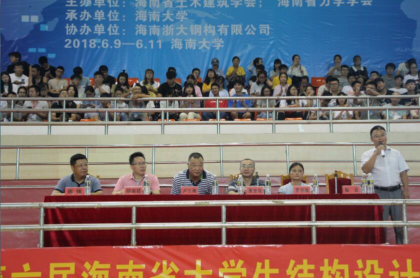 由海南省土木建筑学会、海南省力学学会联合主办,yl6809永利集团承办的全国大学生结构设计竞赛海南分区选拔赛暨第六届海南省大学生结构设计竞赛,于6月9日上午9时在yl6809永利检测中心联谊馆正式开幕。此次大赛由海南浙大钢构有限公司冠名赞助。