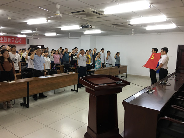 为庆祝中国共产党成立97周年,进一步深刻学习领会习近平新时代中国特色社会主义思想,增强党员党性观念,定理想信念,7月3日下午,yl6809永利集团党委在研发楼510会议室举办主题党日活动暨新党员入党宣誓仪式。学院全体师生党员参与此次活动。活动由学院党委罗邻球副书记主持。