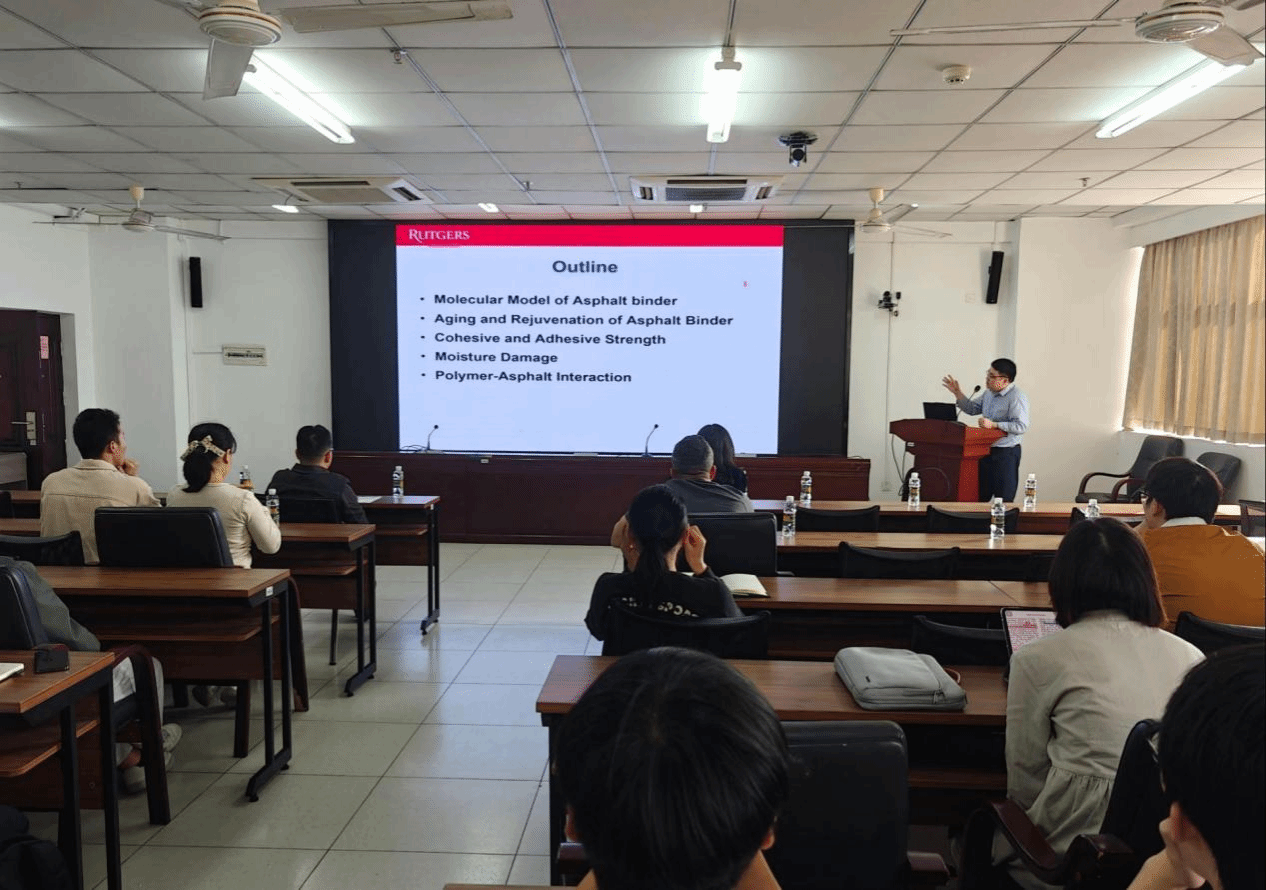 报告结束后,汪浩教授与在场师生就分子动力学模拟的局限性与未来发展方向展开了热烈而深入的交流。此次讲座内容丰富、前沿性强,不仅拓宽了师生们的学术视野,也为今后开展沥青材料的微观力学研究提供了宝贵的思路和方法。