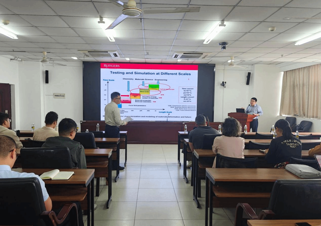 2025年12月29日上午,热带海洋土木建筑讲坛第二十讲在学校研发楼510会议室顺利举行。受yl6809永利集团刘婉秋教授邀请,美国罗格斯新泽西州立大学土木与环境工程学院汪浩教授作了题为《沥青材料的分子模拟方法和应用》的学术报告。