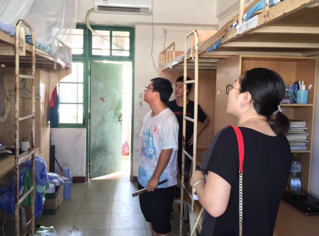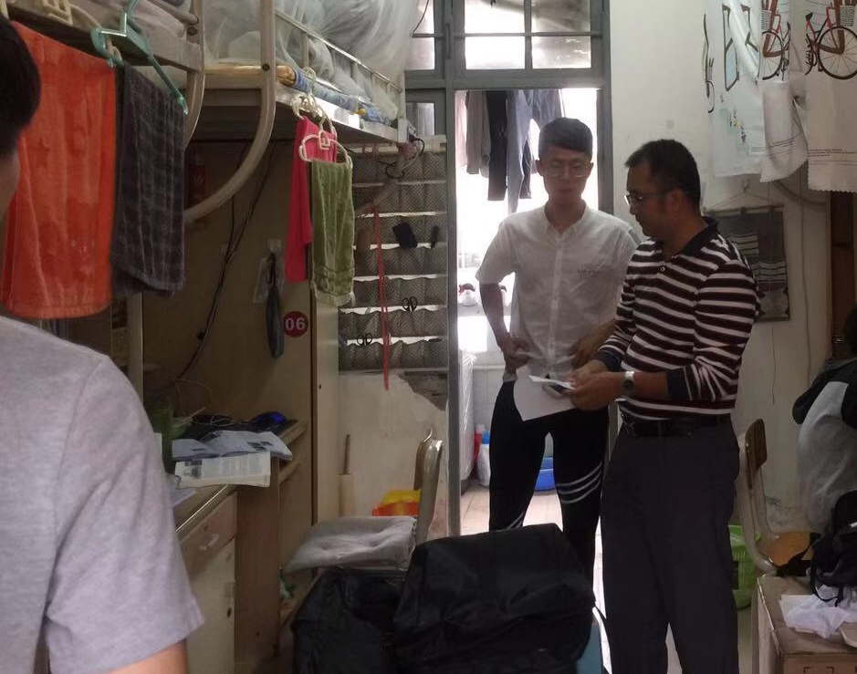 自2018年9月起,yl6809永利集团党委多次带领全体辅导员对学院学生宿舍区进行走访督察。对于卫生不合格宿舍,要求学生立即整改,同时教育引导学生主动向走访宿舍的老师问好。