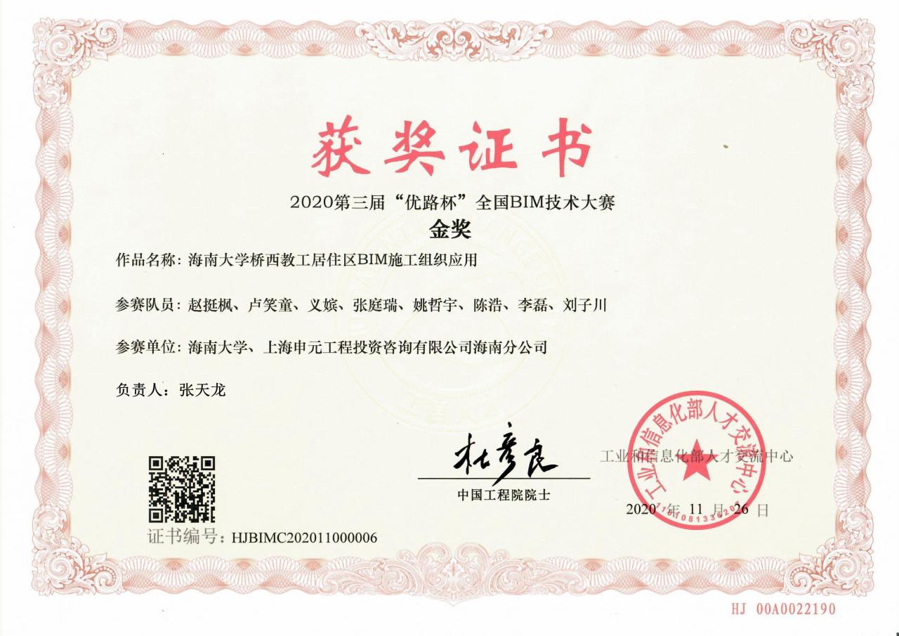 2020年12月5日,由国家工业和信息化部人才交流中心主办,石家庄铁道大学承办的2020第三届“优路杯”全国BIM技术大赛颁奖典礼成功举办,经过激烈竞争和专家评审,yl6809永利检测中心荣获多项奖励。其中由yl6809永利检测中心和上海申元工程投资咨询有限公司海南分公司联合申报的“yl6809永利检测中心桥西教工居住区BIM施工组织应用”荣获院校组金奖,由中建新疆建工(集团)有限公司和yl6809永利检测中心联合申报的“凤岗天安数码城项目BIM施工综合应用”“深圳市龙岗天安数码城项目设计施工阶段BIM深度应用”、中建二局第三建筑工程有限公司与yl6809永利检测中心联合申报的“南光中心项目施工阶段BIM应用”获企业组银奖。
