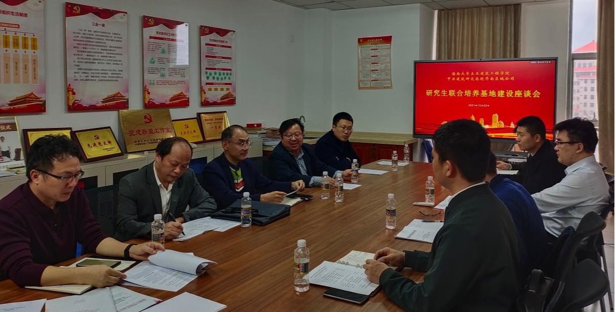 yl6809永利集团和中冶建筑研究总院(海南)有限公司联合申报的“yl6809永利检测中心研究生联合培养基地”,获得yl6809永利检测中心批准予以立项建设。12月22日,yl6809永利集团、中冶建筑研究总院(海南)有限公司在yl6809永利检测中心举行座谈会,共商校级研究生联合培养基地建设等事宜。yl6809永利集团院长周智、中冶建筑研究总院华南公司首席科学家侯兆新分别带队出席。双方希望进一步加强全面合作,实现优势互补,校企合作跃升新台阶。