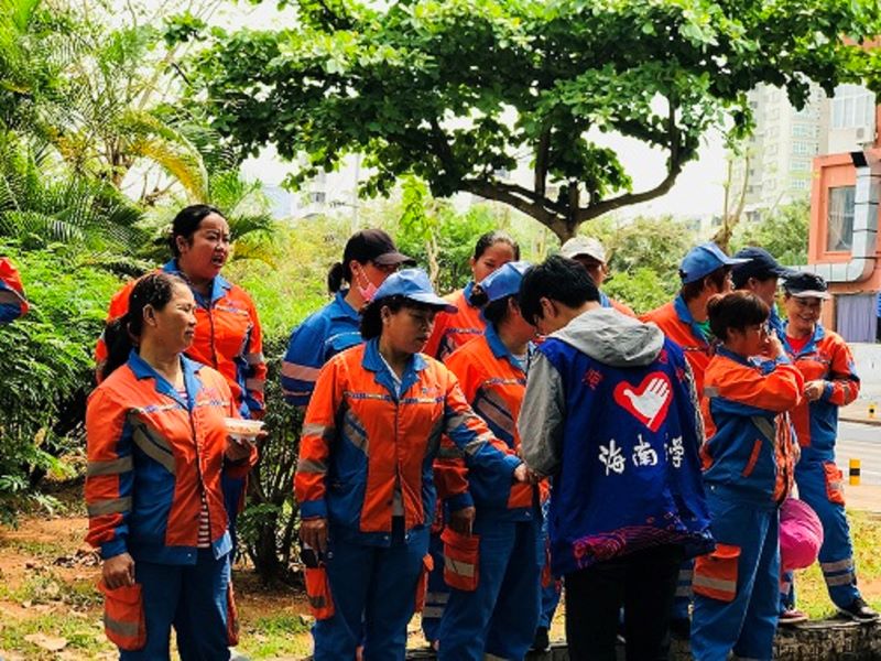 3月17日中午11时,yl6809永利集团青年志愿者协会学生志愿者在yl6809永利检测中心周边开展了一场关爱环卫工人的志愿活动。