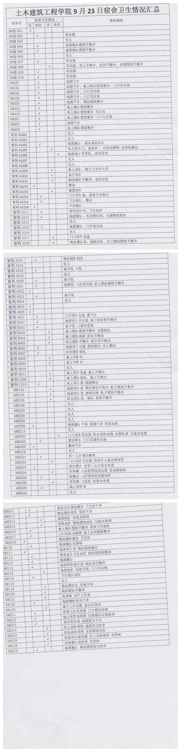 9月23日宿舍检查情况汇总