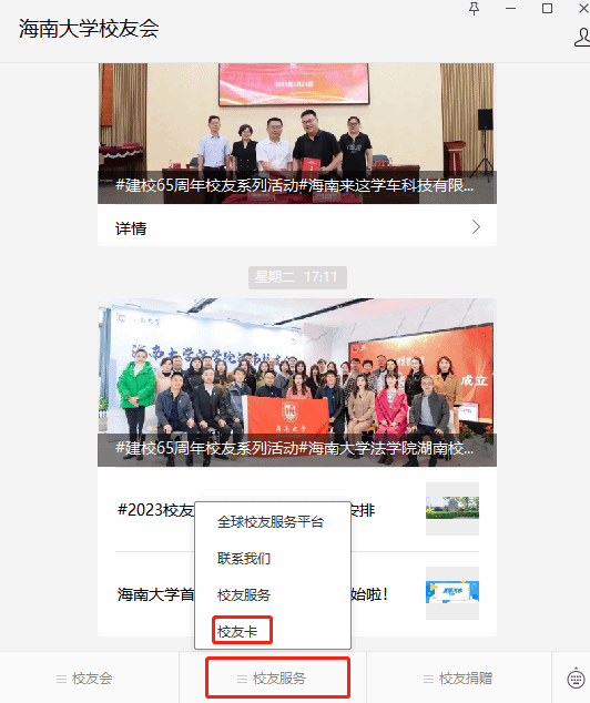 “校友卡”是海大校友专属的身份标识,是一个虚拟卡,供曾经在海甸校区、儋州校区学习、工作过的校友来申领。在网上申领后,就可以享有学校为广大校友提供的校友专属服务。