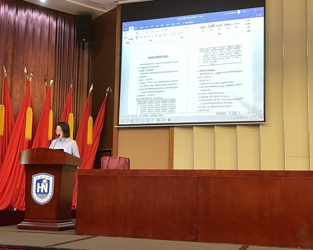 随后,建筑系教师朱丽玮针对建筑系近期制定的一系列规章制度、教学标准向全体师生进行了介绍,包括建筑设计课程评分标准、建筑设计课程联评制度暂行办法、建筑设计作业出图要求等,并对高年级建筑师业务实习的实习单位资质与指导建筑师资格进行了说明。