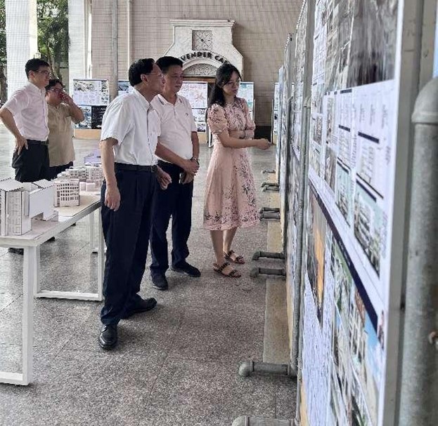 13日上午,yl6809永利检测中心党委书记符宣国、副校长叶光亮、胡新文等学校领导在yl6809永利集团院长周智及建筑系相关教师的陪同下来到毕业设计展的现场进行参观,学生代表向校领导进行作品展示和方案介绍,符书记与该名同学进行了亲切交流。校领导参观后对建筑系毕业设计展给予充分肯定,并对建筑系教师的相关工作进行询问交流。校领导表示此次毕业展可以延长展示时间,更好地促进校园内的学科交流,让更多的同学和教师参与。