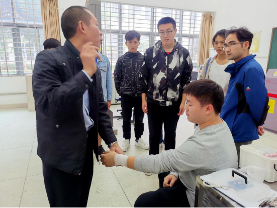 实验中心准备了药品急救箱,并组织学生进行了模拟机械伤害导致外伤的应急包扎过程演练。
