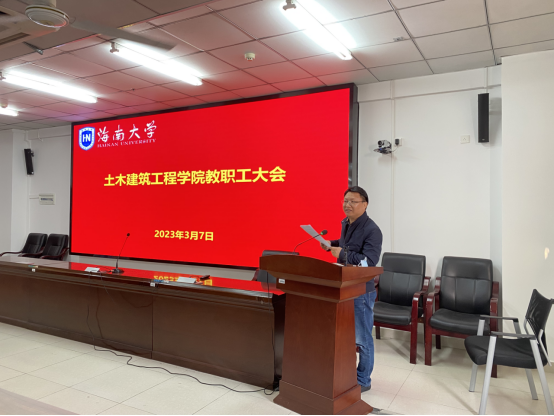 2023年3月7日下午,yl6809永利集团新学期教职工会议在研发楼510报告厅召开。学院全体党政领导班子成员张长海书记、周智院长、邱宙廷副院长、张友良副院长、田元福副院长、薛春霞副院长、辛大波副院长、系主任、实验教学中心负责人、科室管理职员和全体教师等参加会议。会议由学院院长周智主持。